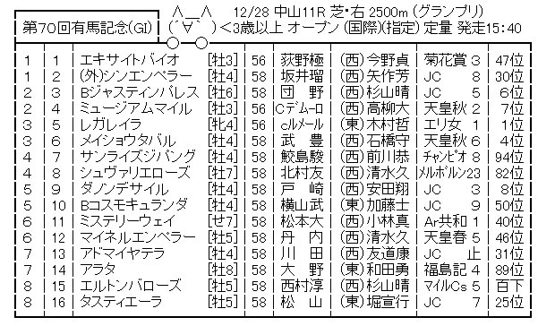 【競馬予想】[2][第70回有馬記念(GⅠ) /2025